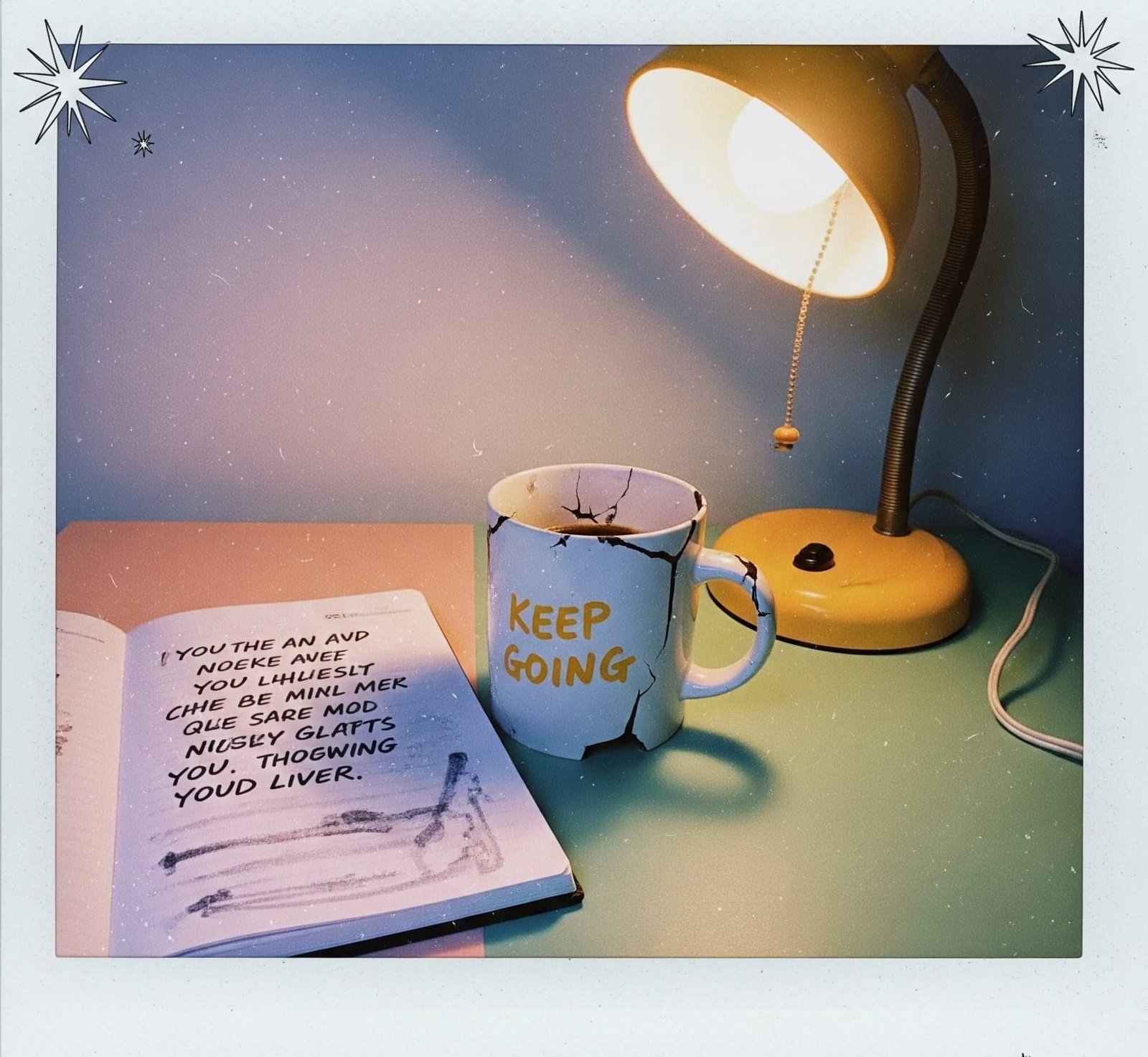 Cautious Optimism: Vintage "Keep Going" Desk Scene