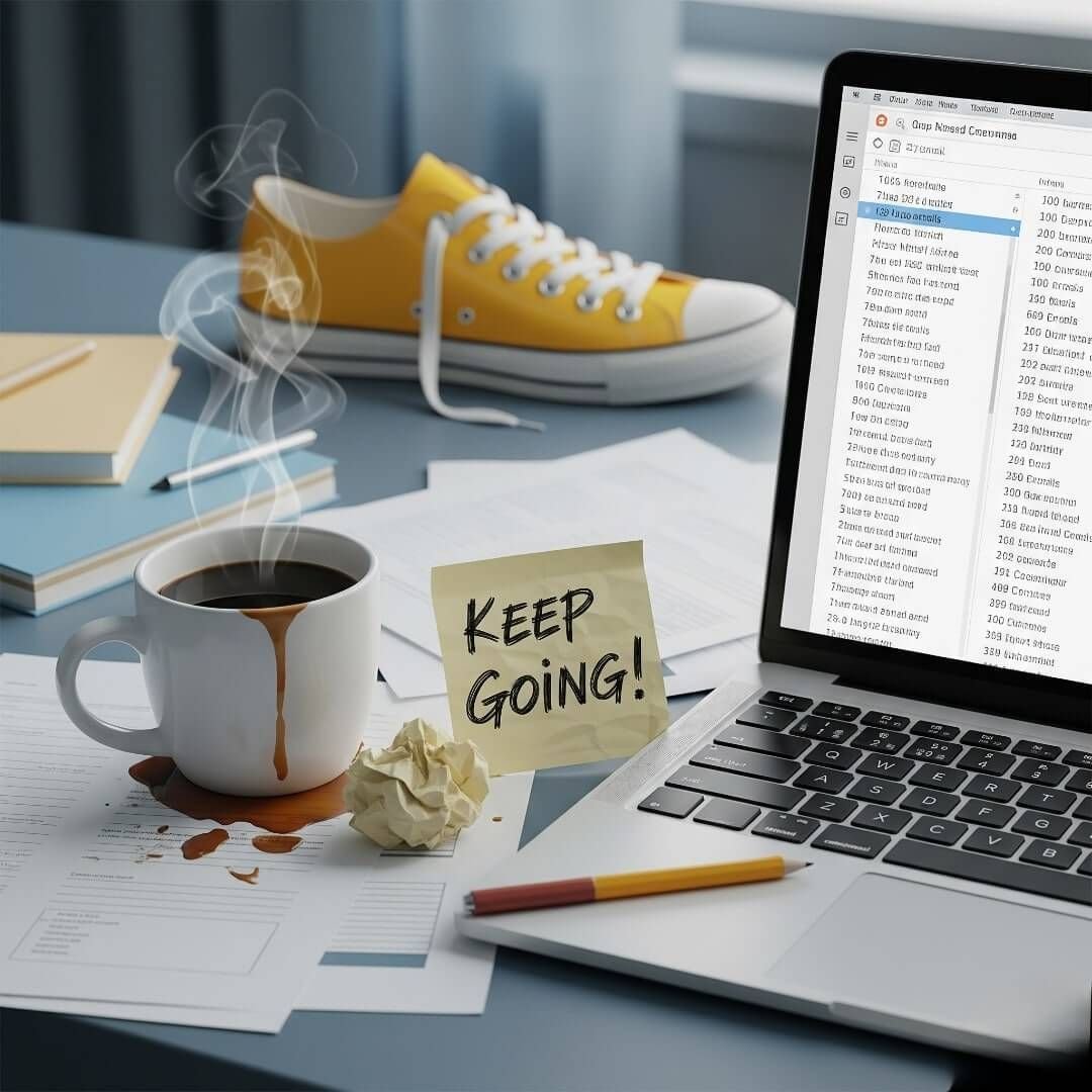 Cluttered Desk & Coffee Chaos: Work Motivation & Productivity